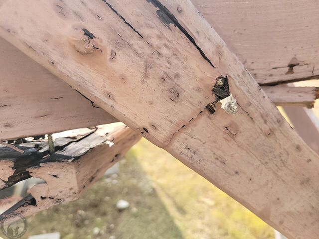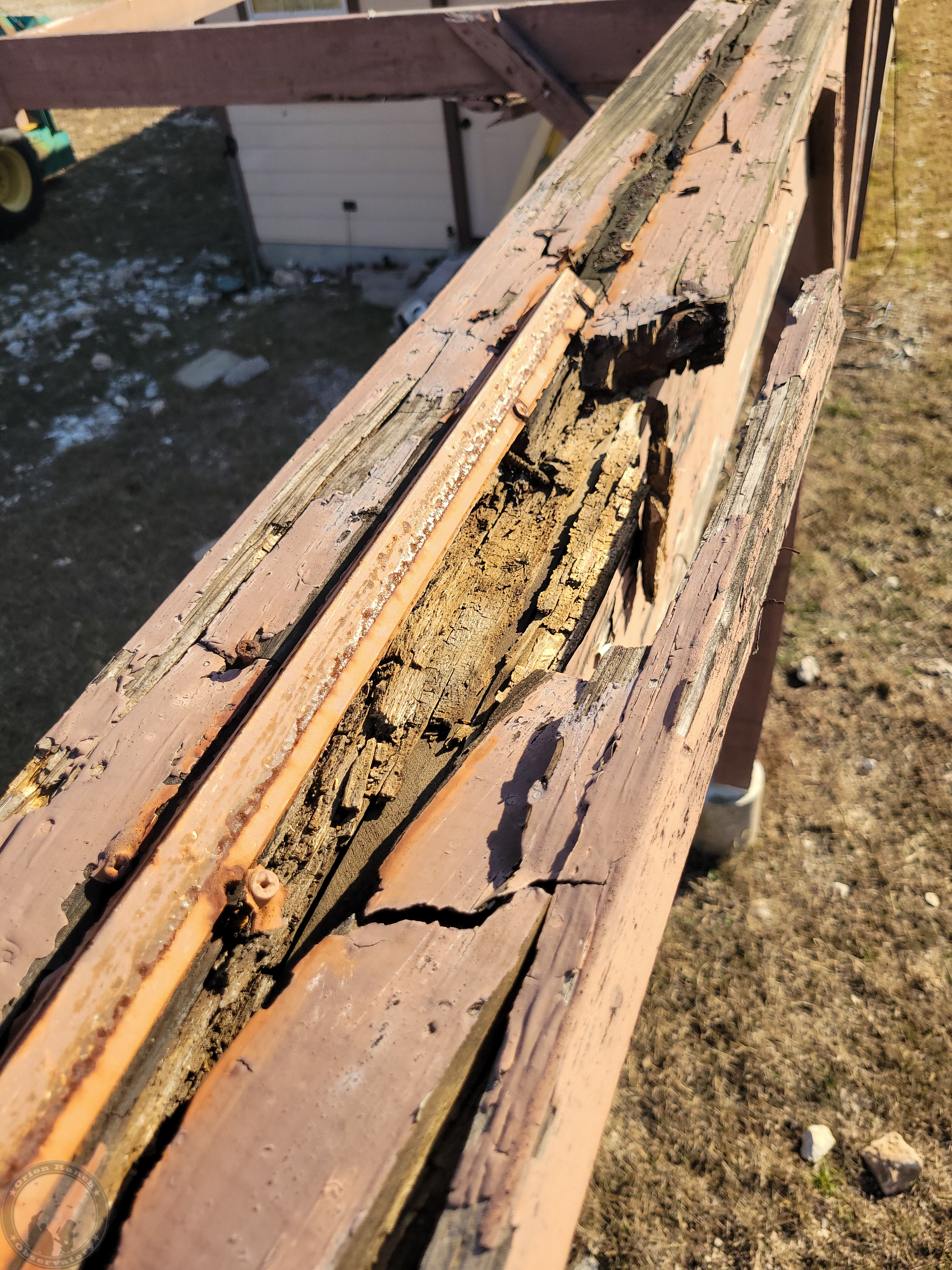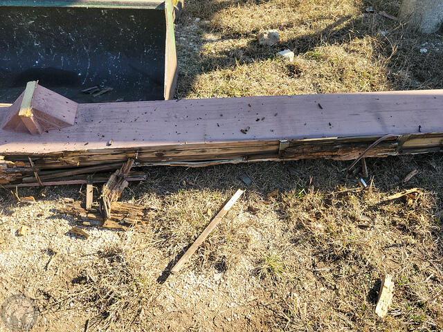 Sadly, after doing a more thorough inspection of the rail system, it was in pretty bad shape and not something that a bit of maintenance would easily address. Certainly not something worth throwing money away on more wood. The diagonal braces on the opposite side middle post were shot.
