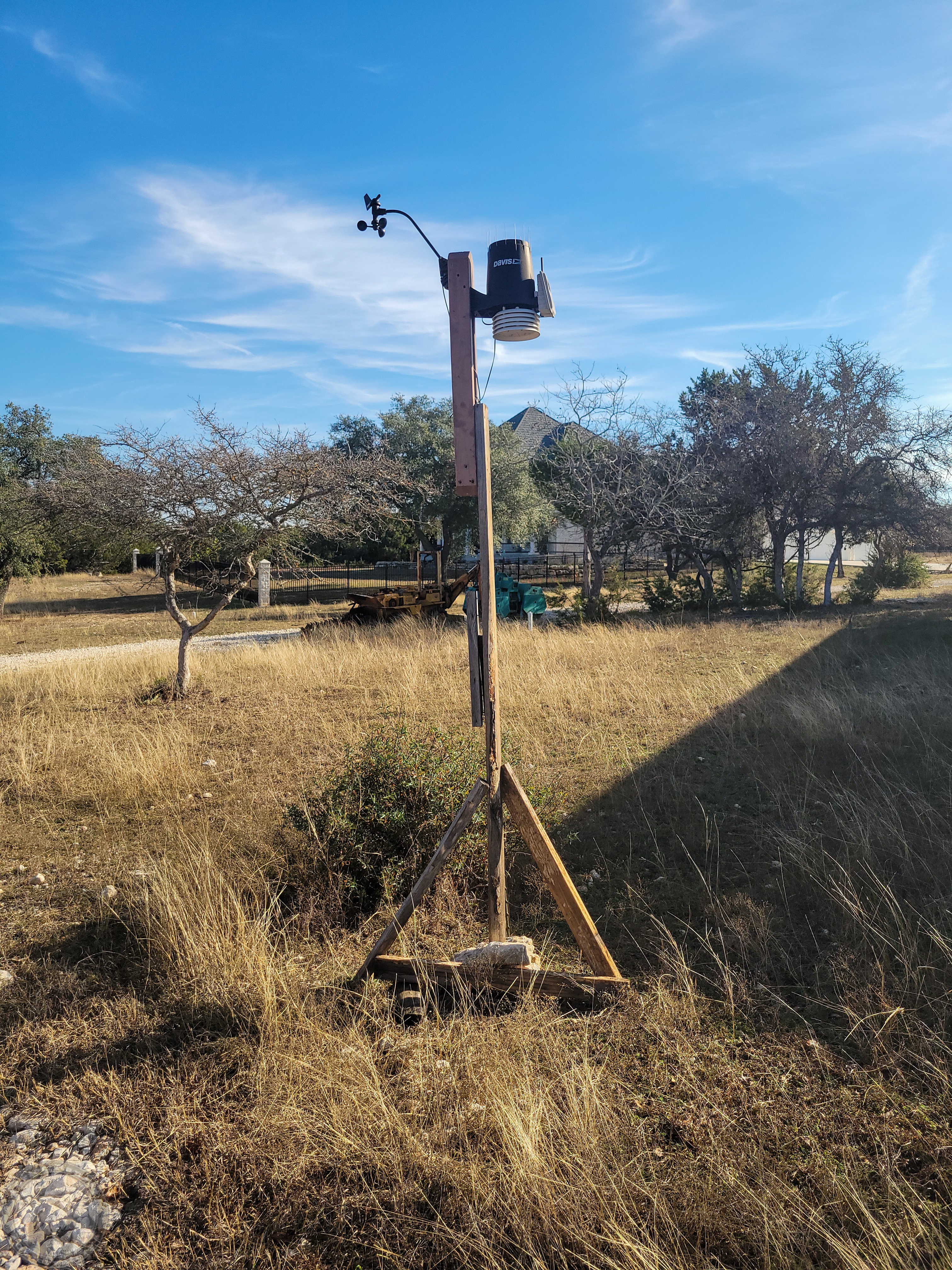 Finally, I had to make a temporary stand to hold the weather station and get it moved without bouncing it around too much to “make it rain”. I should probably be sending it off to be refurbished while I have it down, but I really hate being without it.