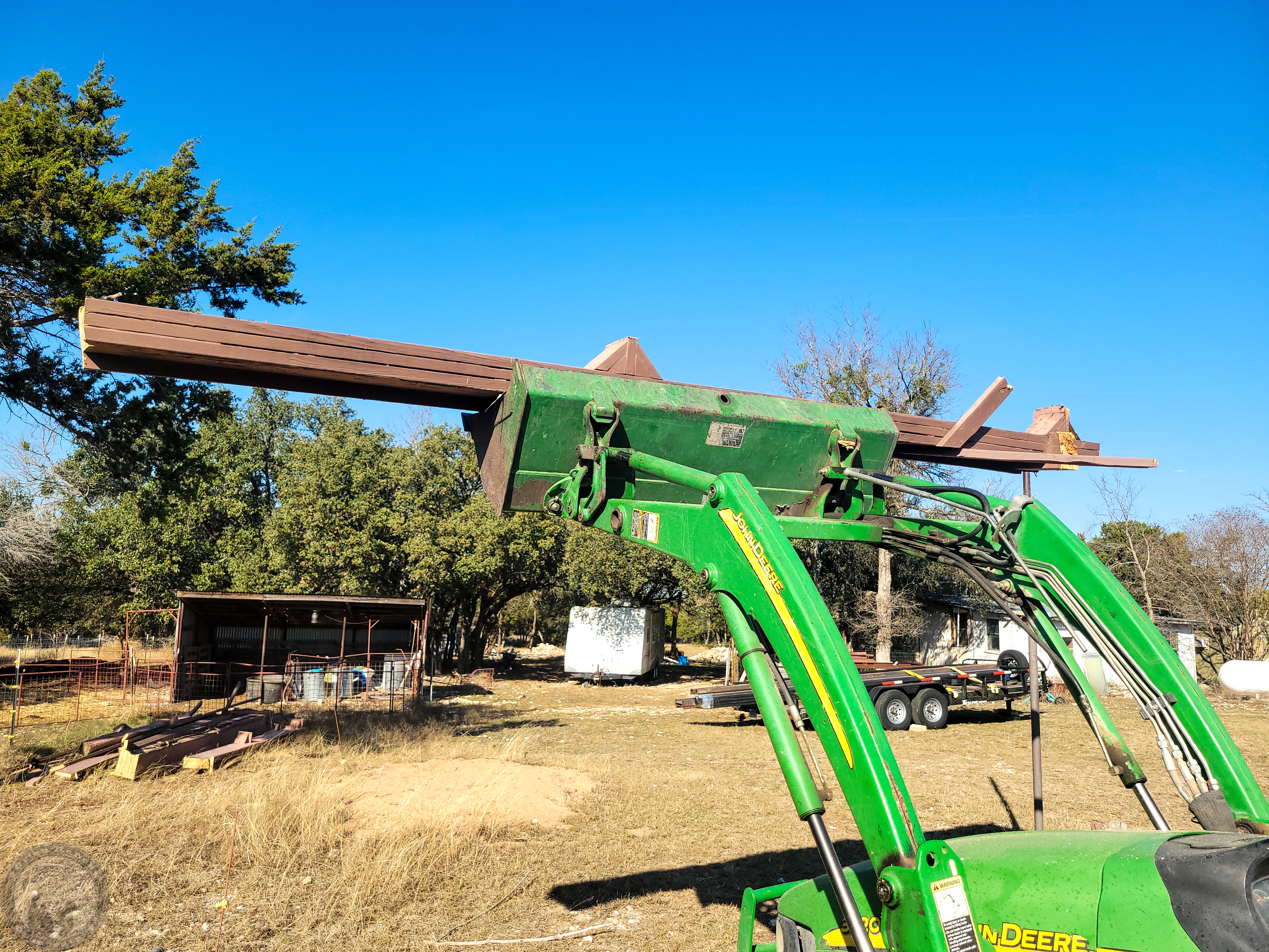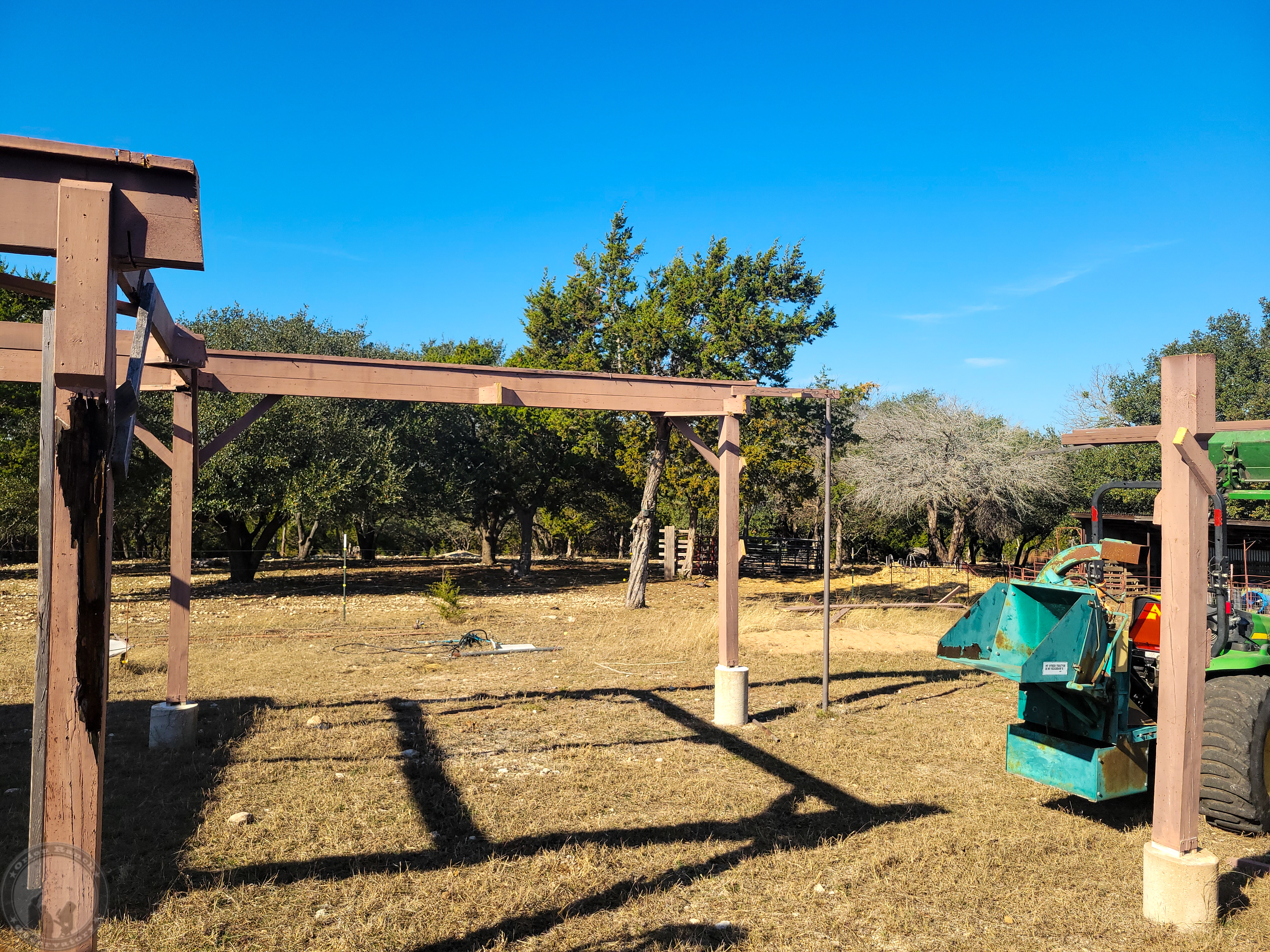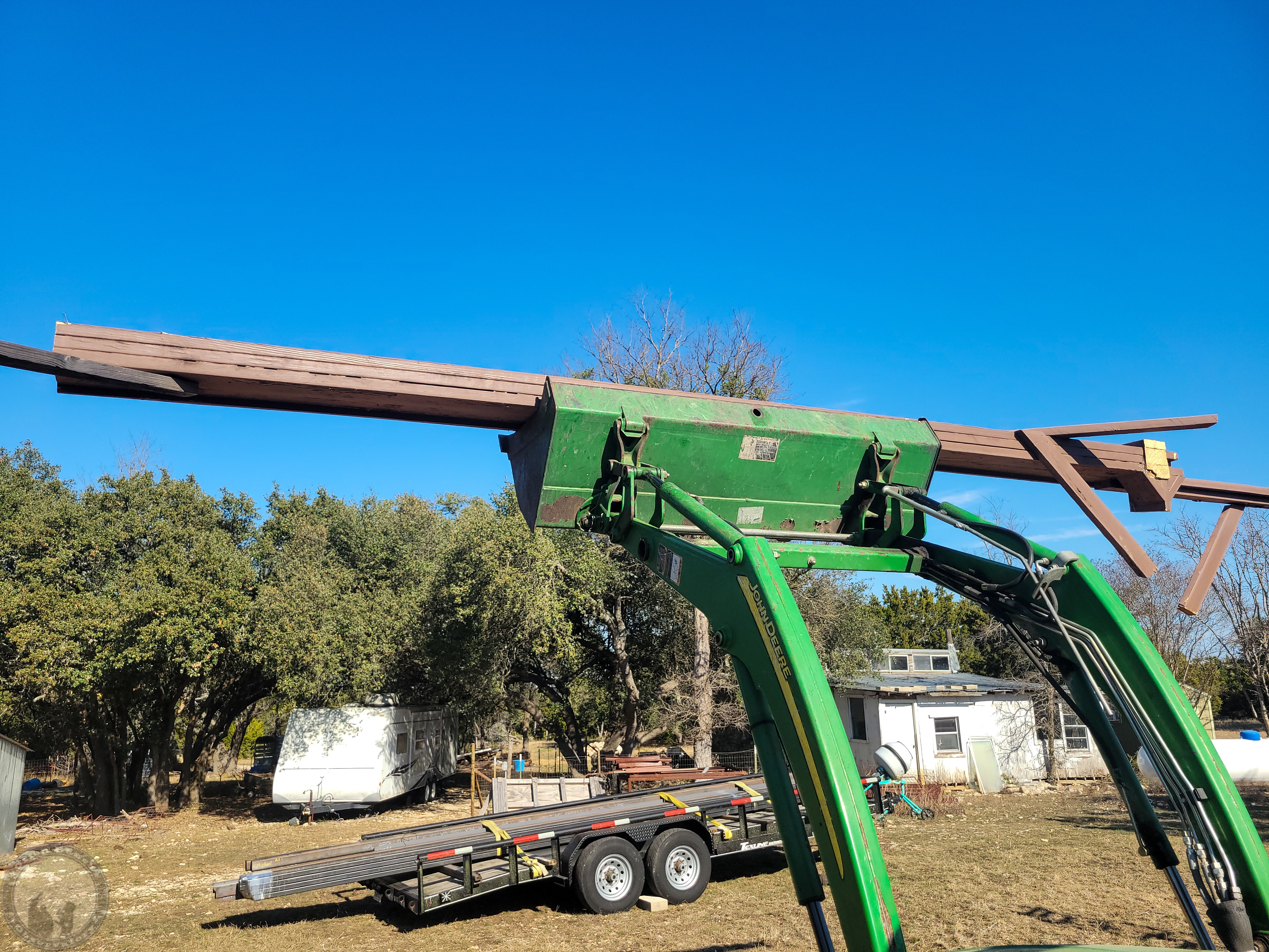 Well, now that I have a trailer load of steel, looks like I’m committed (or should be committed)! So tomorrow I start demolition of the old rail system. Had hoped to have that done or at least underway by now, but spent the time cleaning up the area and trimming some trees to have room to work and install some cameras for timelapse capture.