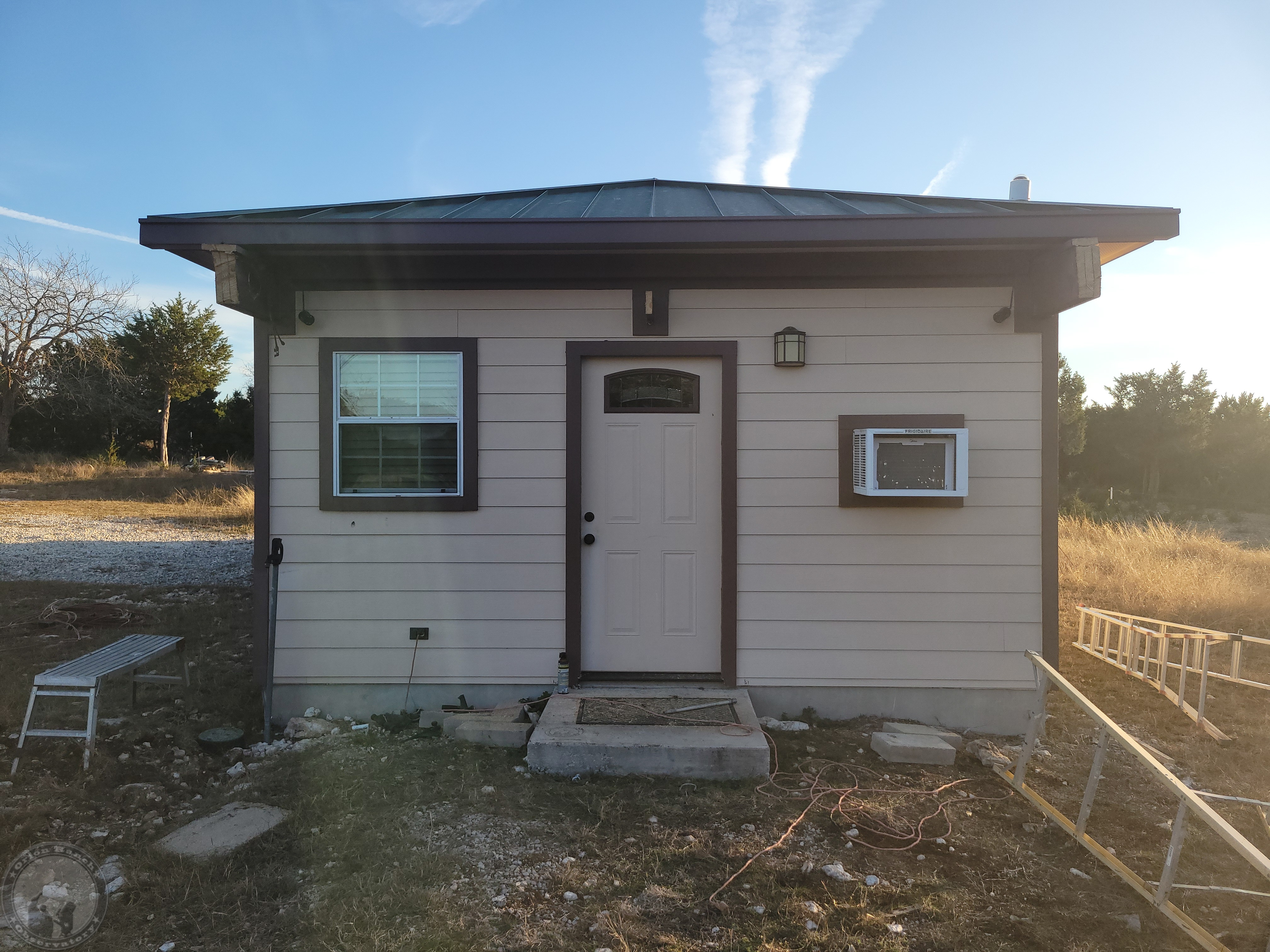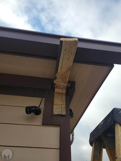 If this weather improves, tomorrow I’ll be out there working on the other side! Hopefully it will go a bit faster, but we’ll see. In the meantime, here’s a video I took while up on the ladder finishing this up.