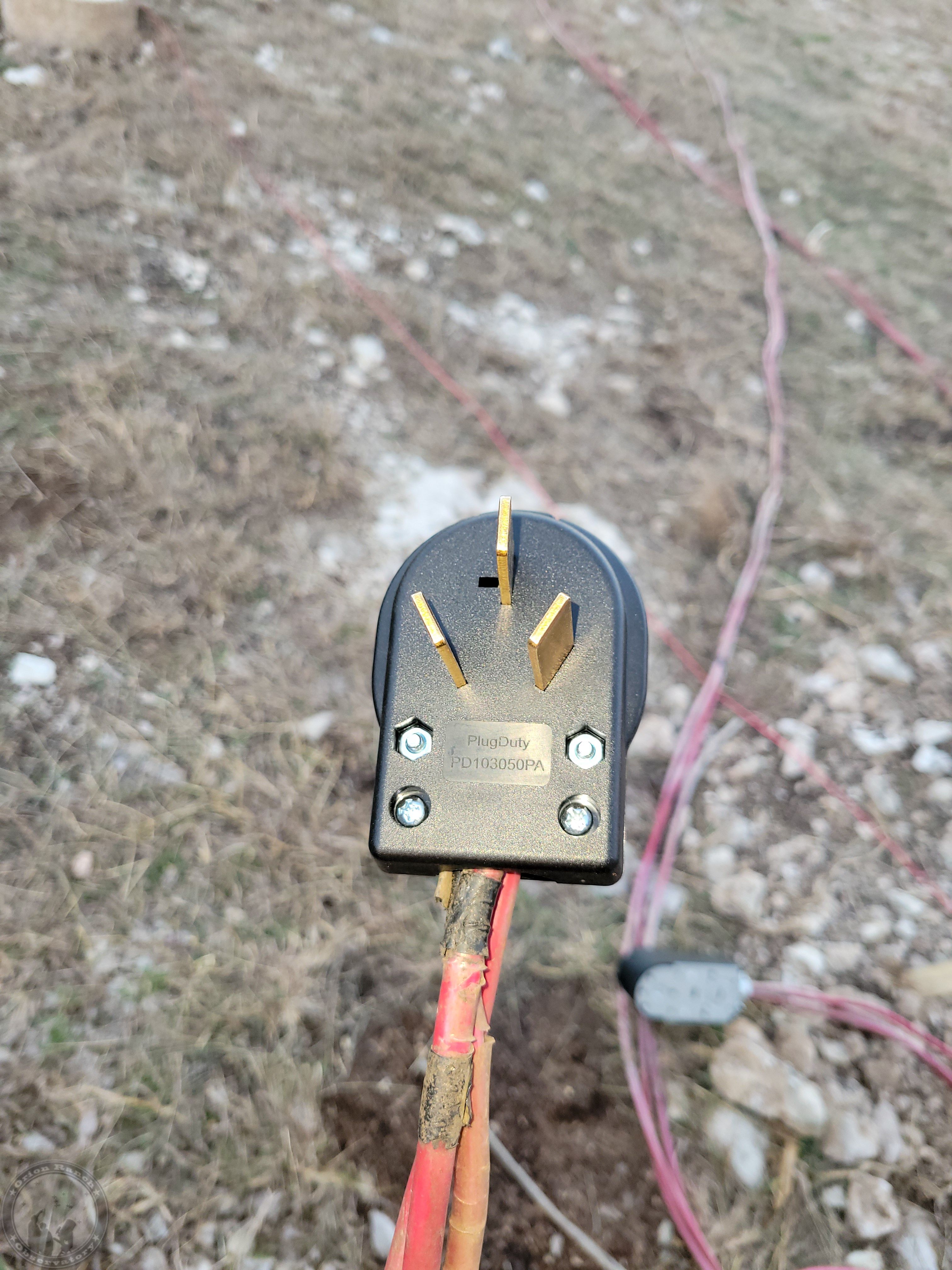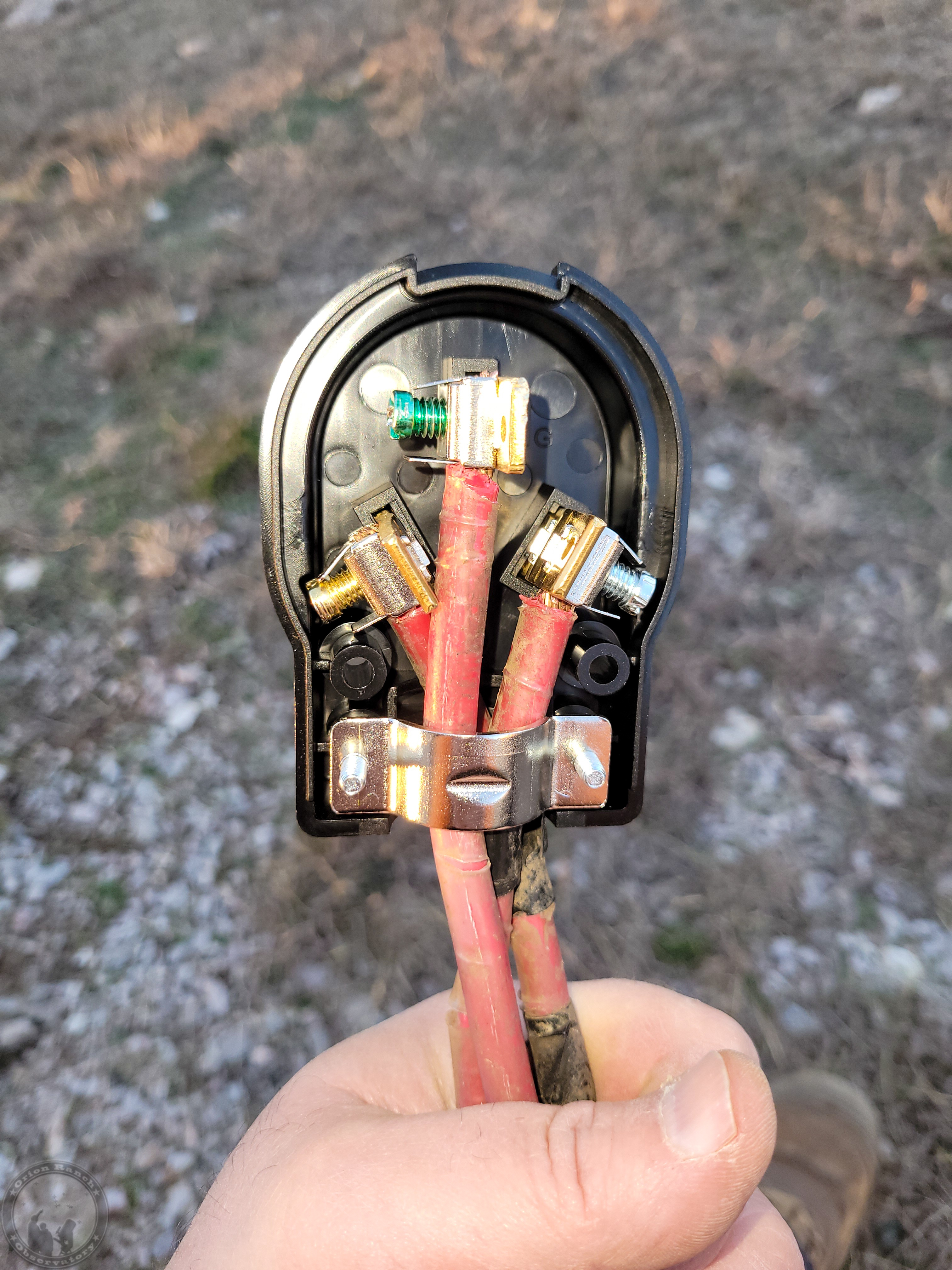 Finally, I put together the 2 AWG welder cable with the new plug that arrived from Amazon. Unfortunately, I realized after the fact that the outlet I’d bought at the local big box store years ago and never used wasn’t actually the correct 50 Amp outlet, but a 30 Amp one (right angle ground and a narrower slot). At this point I’ll just take off the cover and widen the slot, but annoying nonetheless!