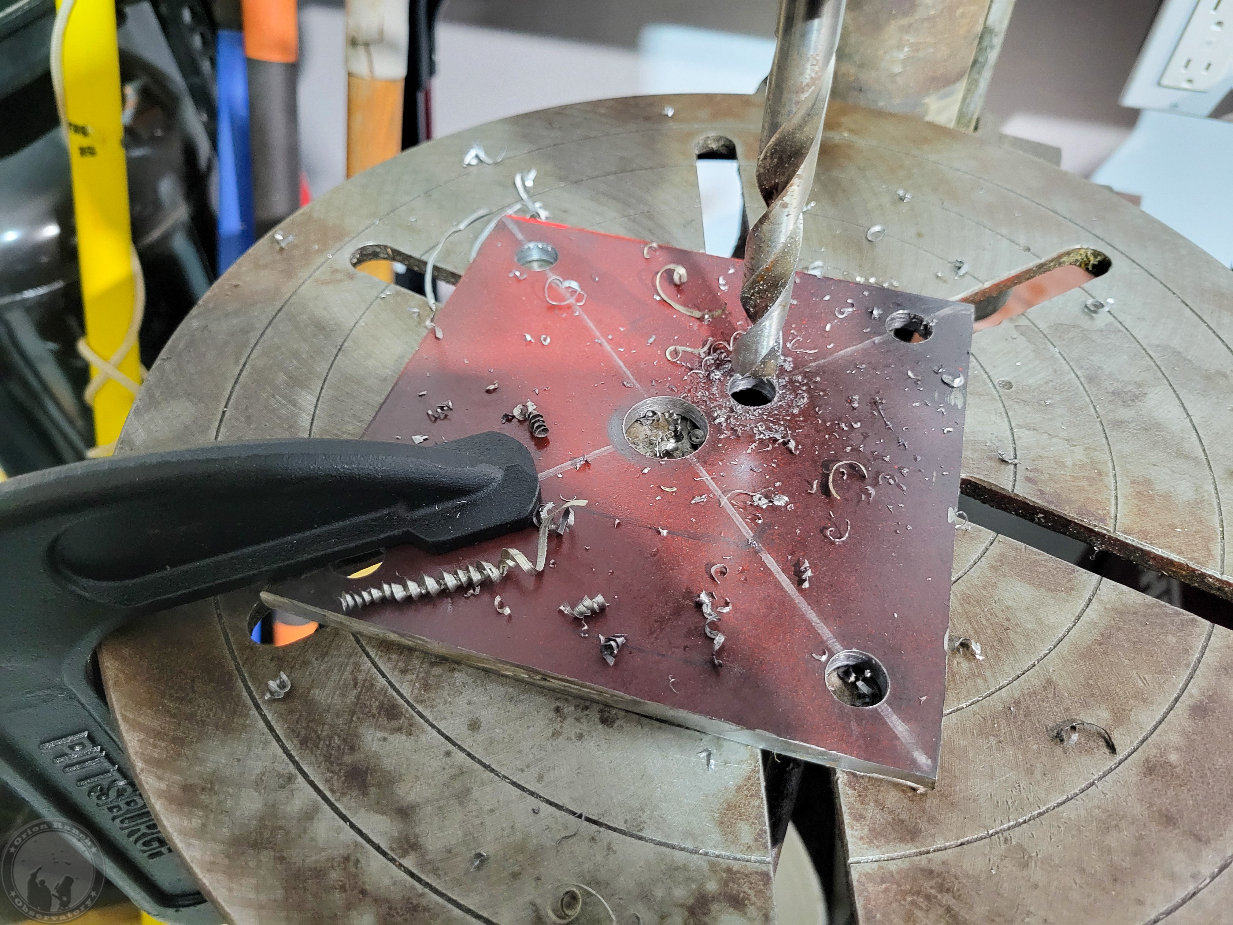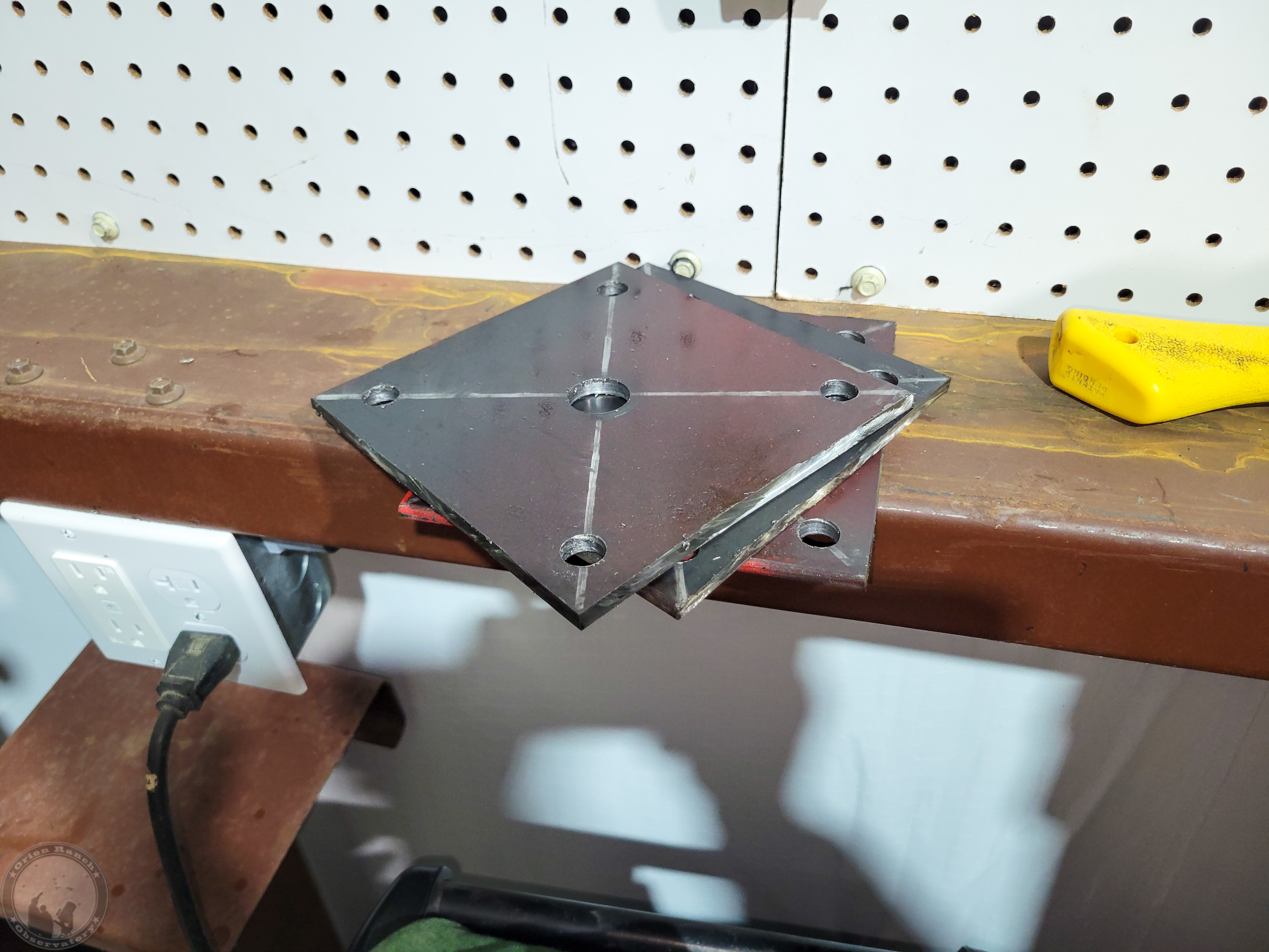 I still didn’t get to welding anything, but spent most of my time stringing guides from the sides of the observatory to check on the alignment.