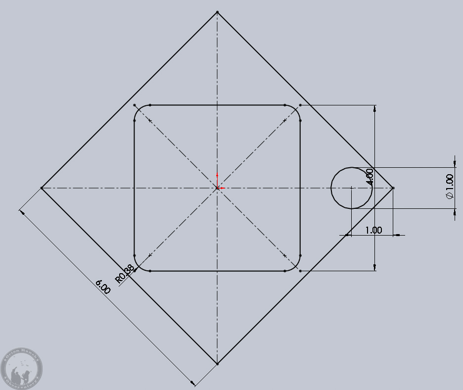 To get an idea of how close the post will end up to the new hole, I drew these lines 2″ from center and 1/4″ inside that.
