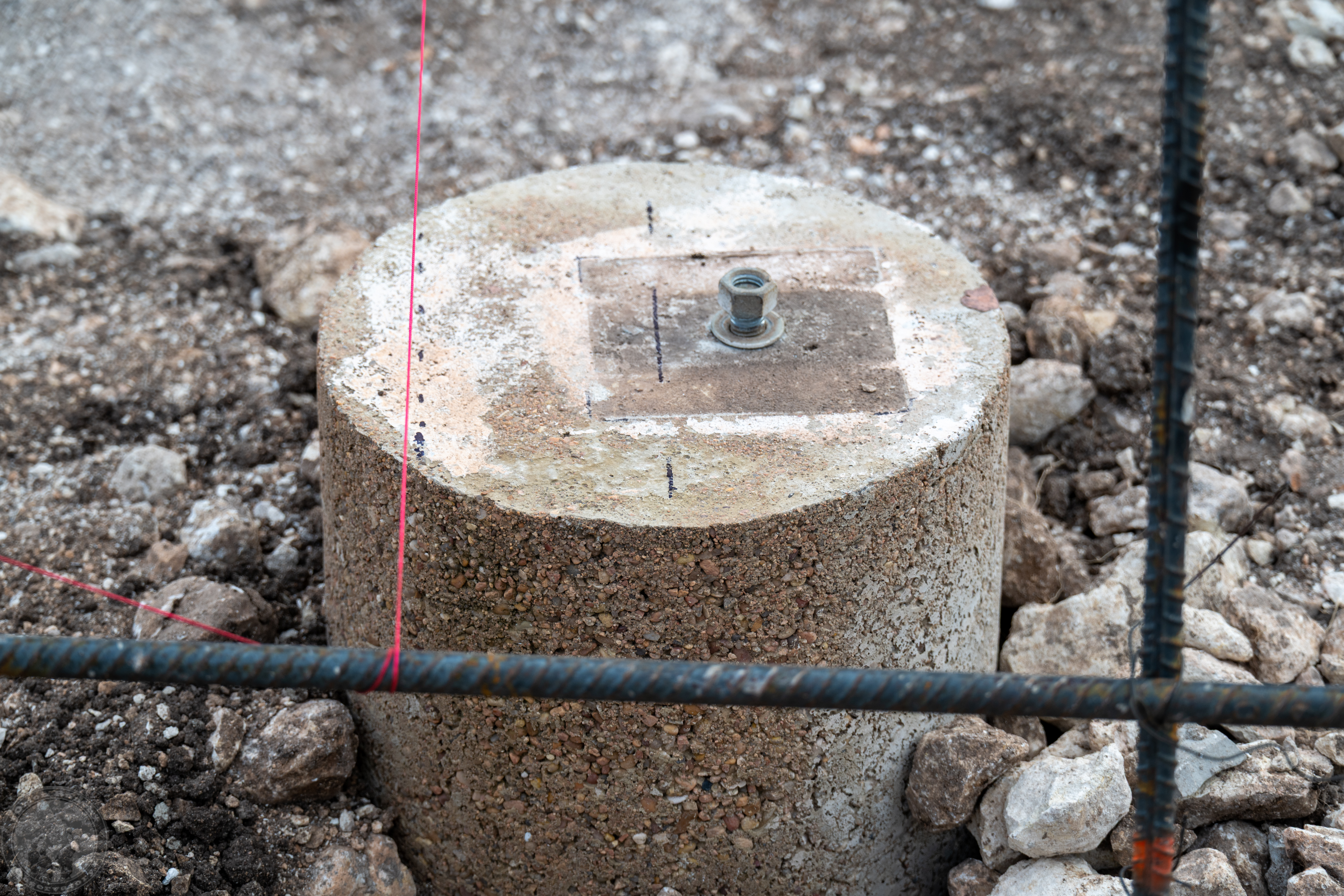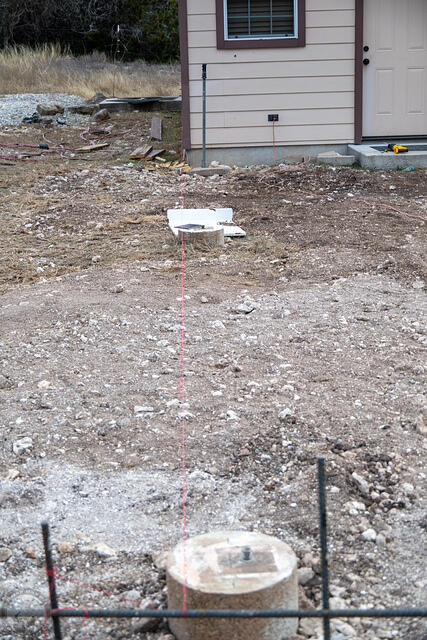 I then proceeded to remove the post bases and run strings to determine how well those center studs aligned with my mark. Looks like things are within half an inch. I’ll try a few other steps before I lock anything down completely.