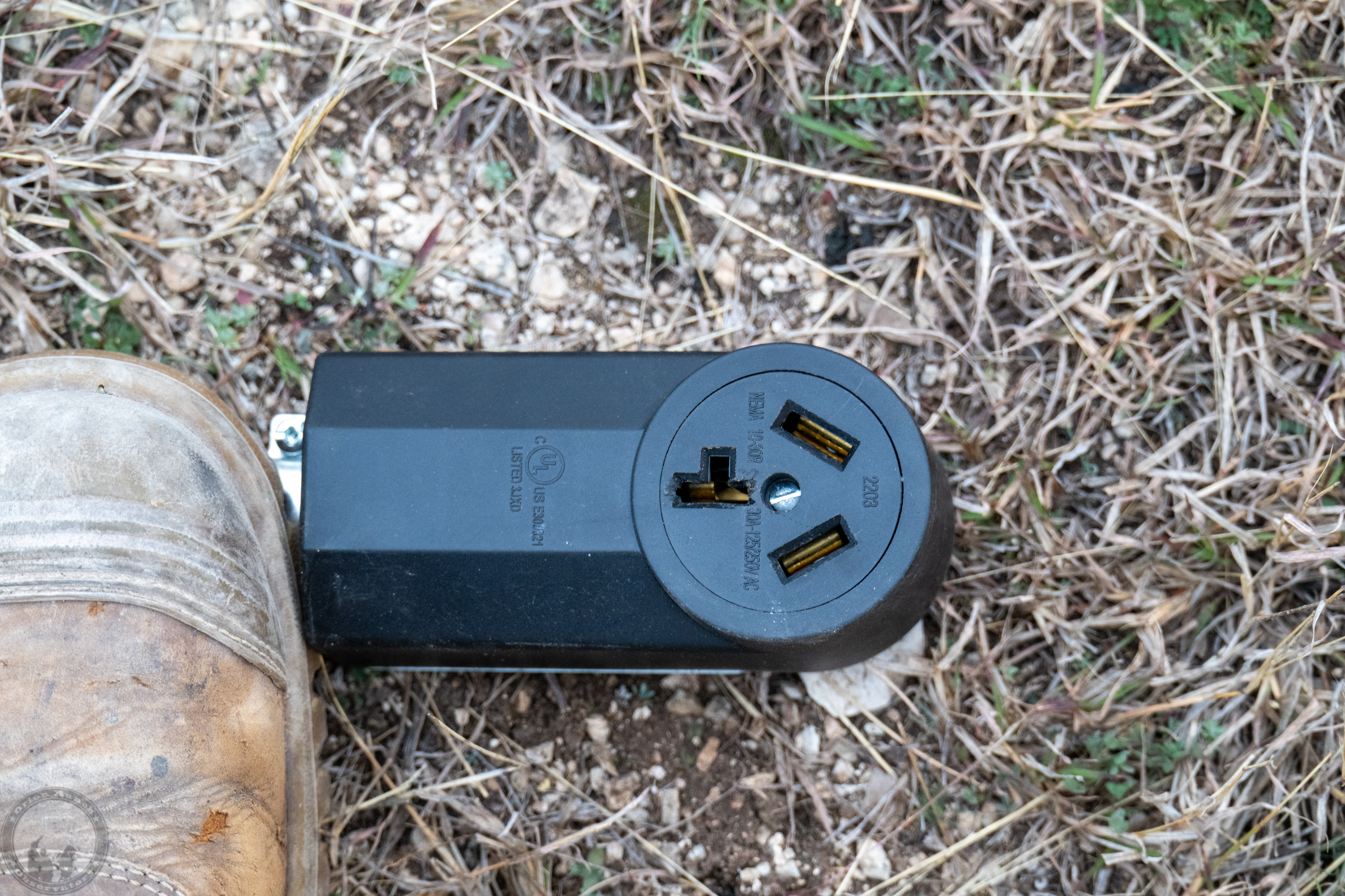 I also took the oscillating saw with a small blade to the ground pin socket on the plug let me open it up to take the 50 Amp ground pin.