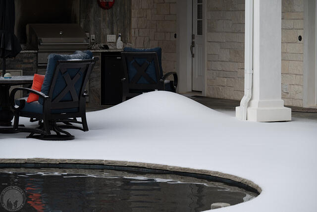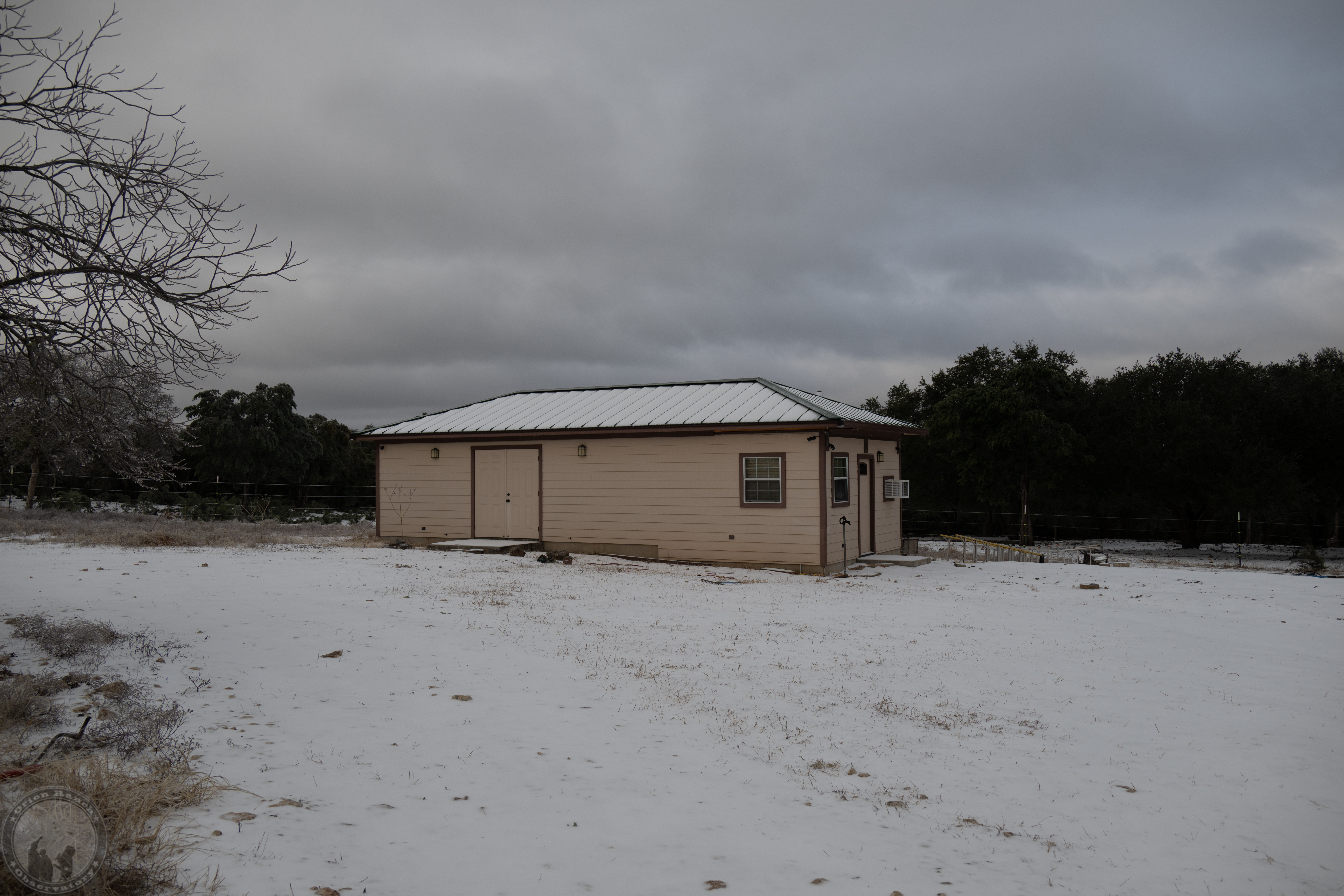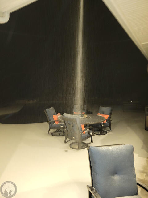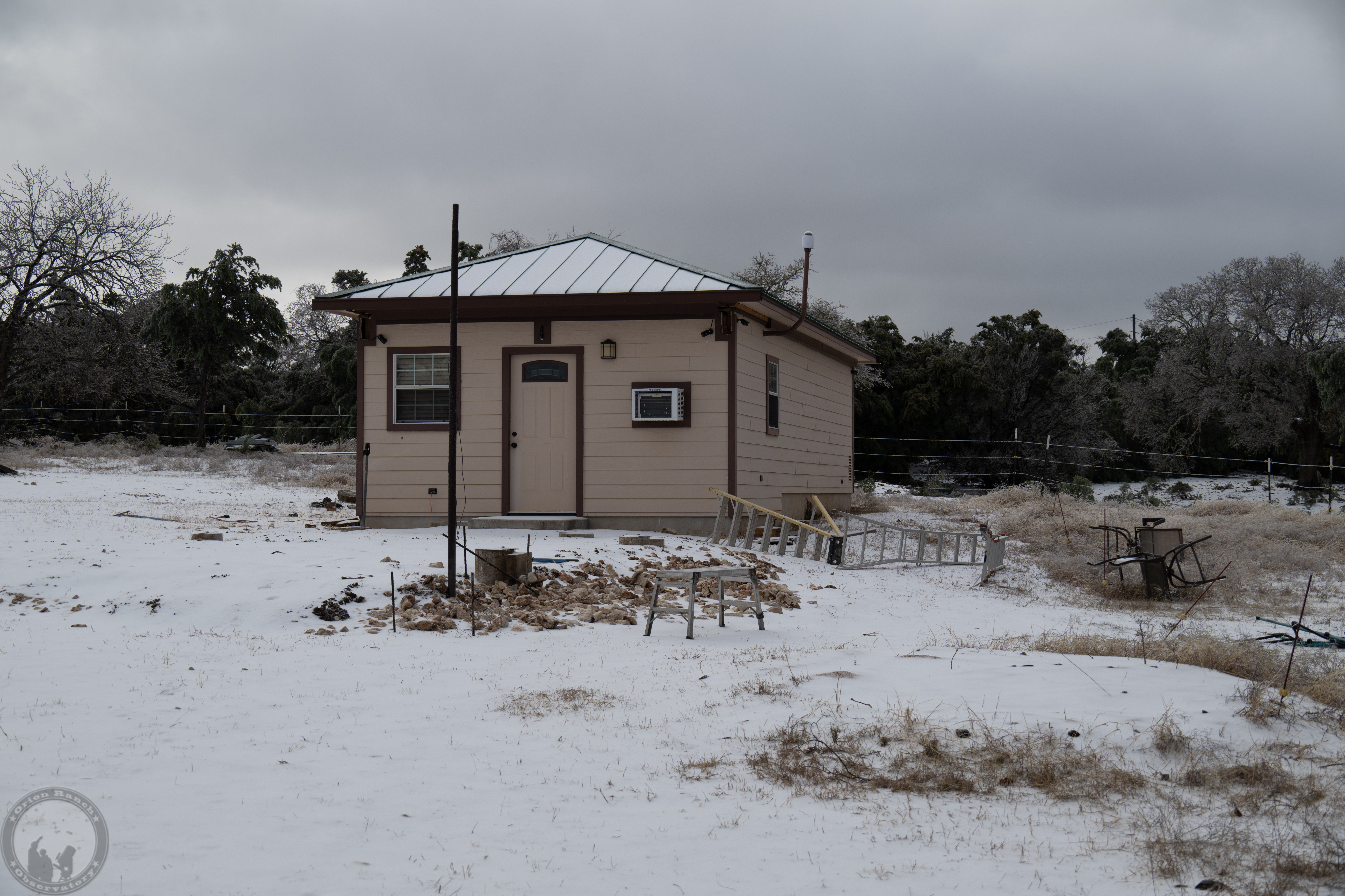 After 2.6″ of rain followed by ~1/8″ accumulation of freezing rain, we had about an inch or so of graupel snow (between snow and sleet) overnight. Some nice 18″ drifts where it all came off the valleys of our roof. Thus, the lack of progress on the construction this weekend!