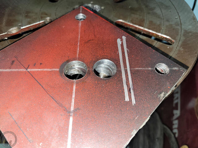 I then installed the plates on center and polished them with a wire brush wheel to remove all paint, etc. I had to cut out between the holes on one in order to get it to the right spot. I then scored a 4×4 guide into each plate.