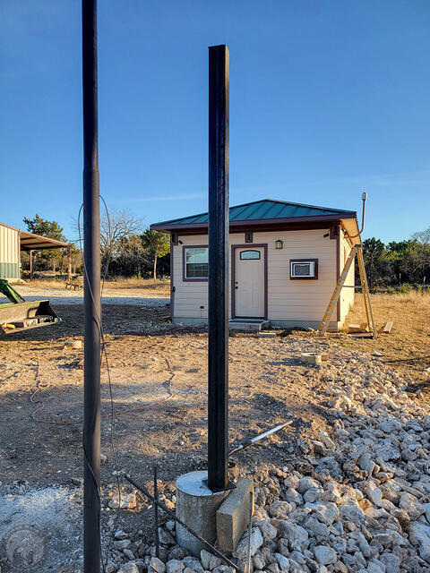 In answer to one of the questions on Cloudy Nights regarding where I got my steel and what it cost, I checked with several local (Austin metro area) houses and the two that gave me quotes were in the same ballpark. On the other hand, Metal Mart, which is in my back yard, comparatively, was worthless to try to work with! At any rate, with tax, the lot was $4153. For piece part prices (excluding tax) a 24′ 4x4x0.25 for my posts weighs 293 lbs and was $313.44. A 25′ W12x14 H-beam was 350 lbs and $406. A 24′ 2x4x0.120 for my cross braces was $125.52 for 114 lbs. So, on average, figure about $1.05-1.15 per pound here in Central Texas at least. That was with me picking it up.